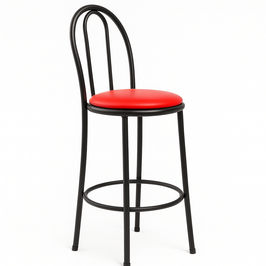 Banqueta giratoria con respaldo tapizado tipo Rino, pensada para barras, restaurantes y comedores industriales. Ofrece asiento giratorio acolchado y respaldo ergonómico tapizado en vinil de primera calidad. La estructura es metálica en tubo redondo esmaltada con pintura electrostática; incorpora aro descansapiés integrado, base fija con tapones antideslizantes y un inserto metálico que refuerza la sujeción del asiento, aportando mayor durabilidad y estabilidad.