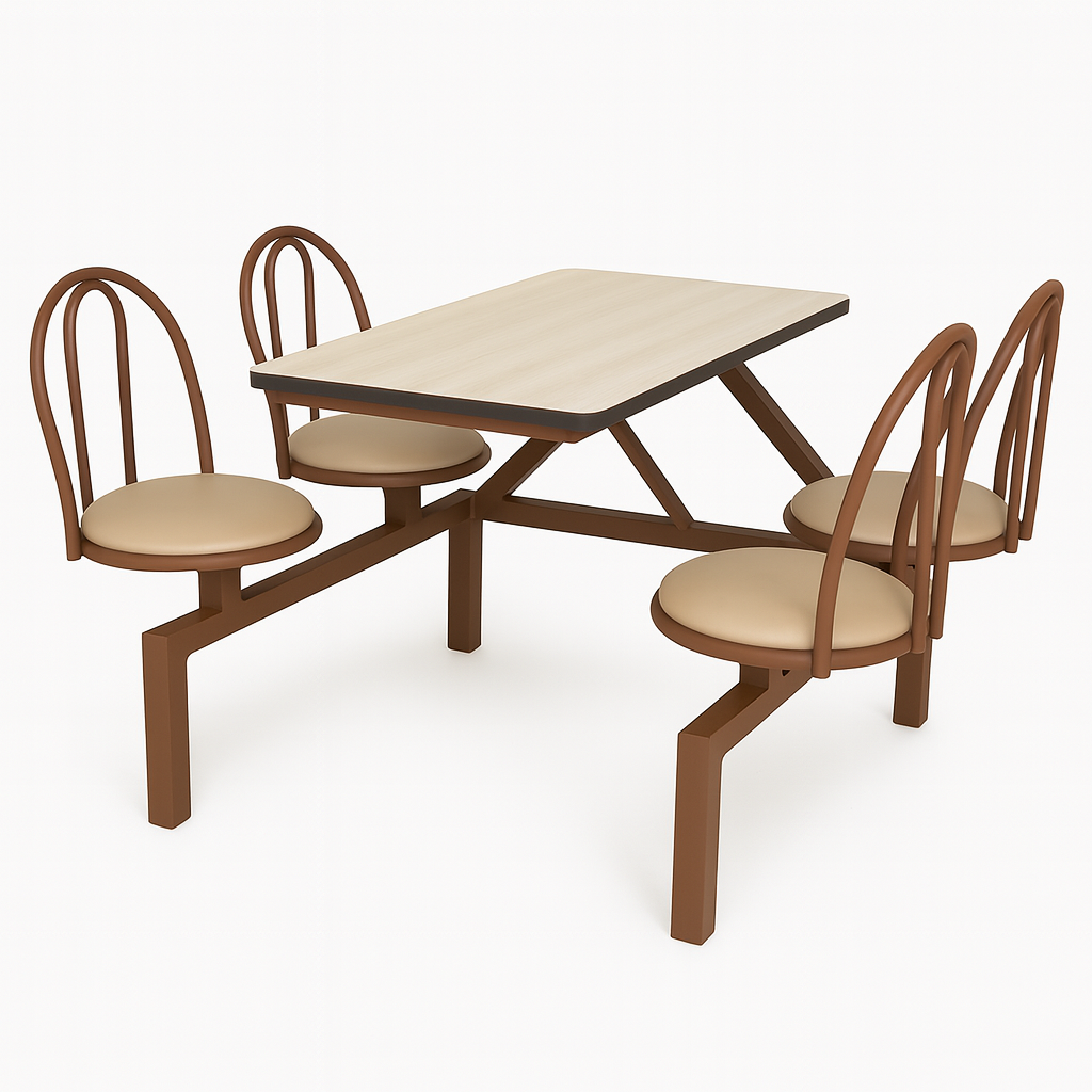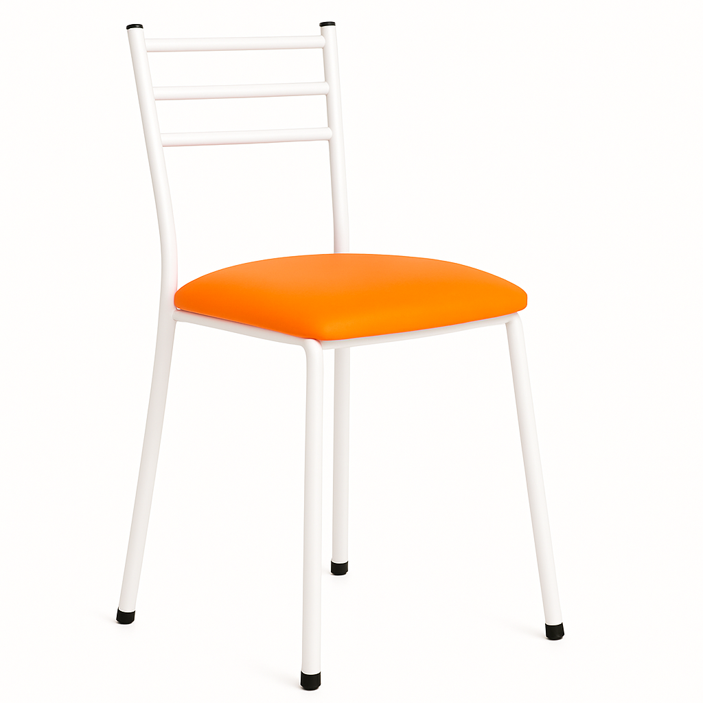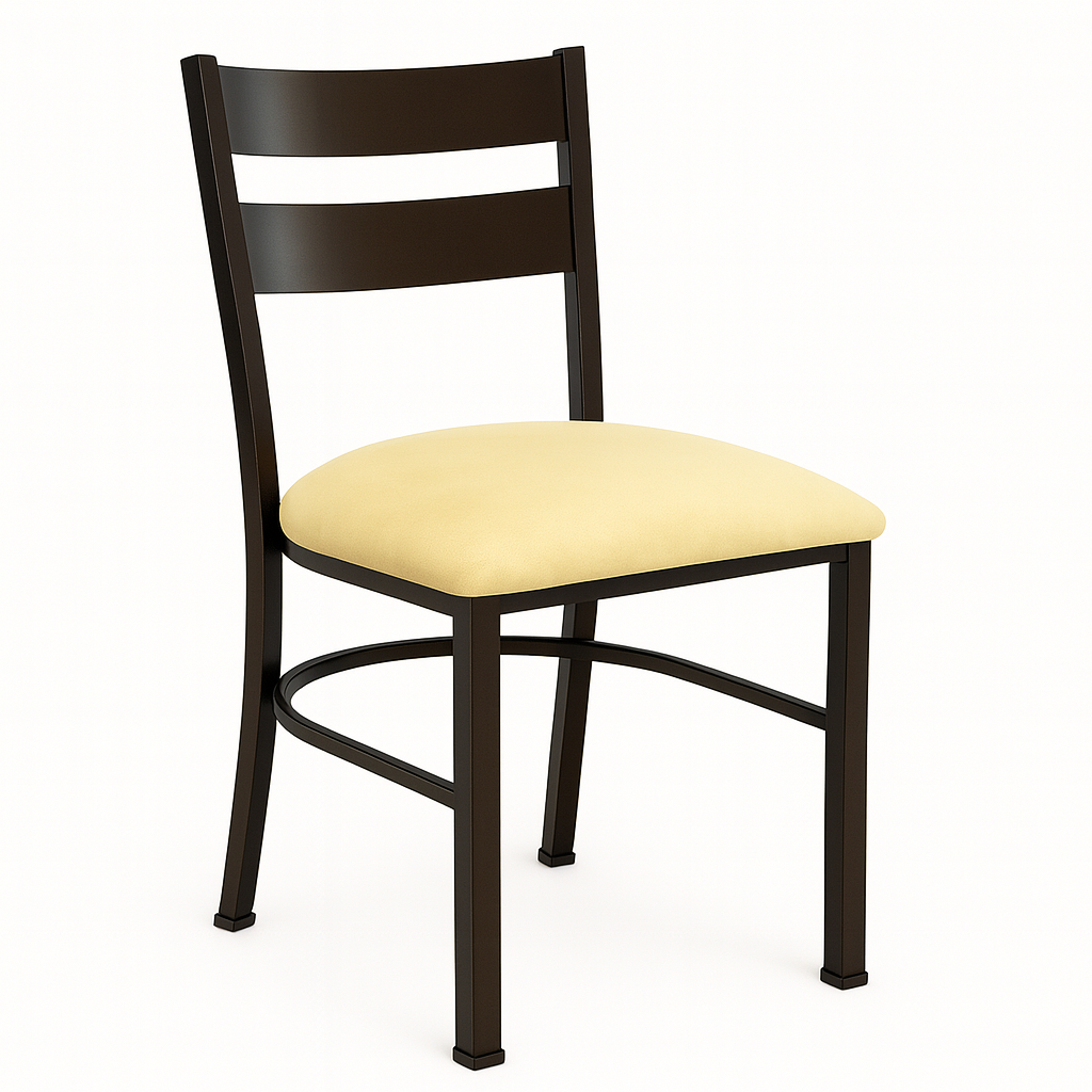 Silla metálica tipo “Holanda” pensada para comedores, restaurantes y espacios institucionales. Tiene un respaldo curvo formado por dos láminas metálicas y un asiento acolchado tipo inserto, tapizado en materiales como vinil, damasco o microfibra de alta calidad. La estructura es de tubo cuadrado de acero con pintura electrostática, y cuenta con un soporte entre patas en forma de “U” y tapones antideslizantes en las patas para mayor estabilidad y movilidad. Ofrece un balance entre ligereza y durabilidad, con un diseño adecuado para uso intensivo y fácil mantenimiento.