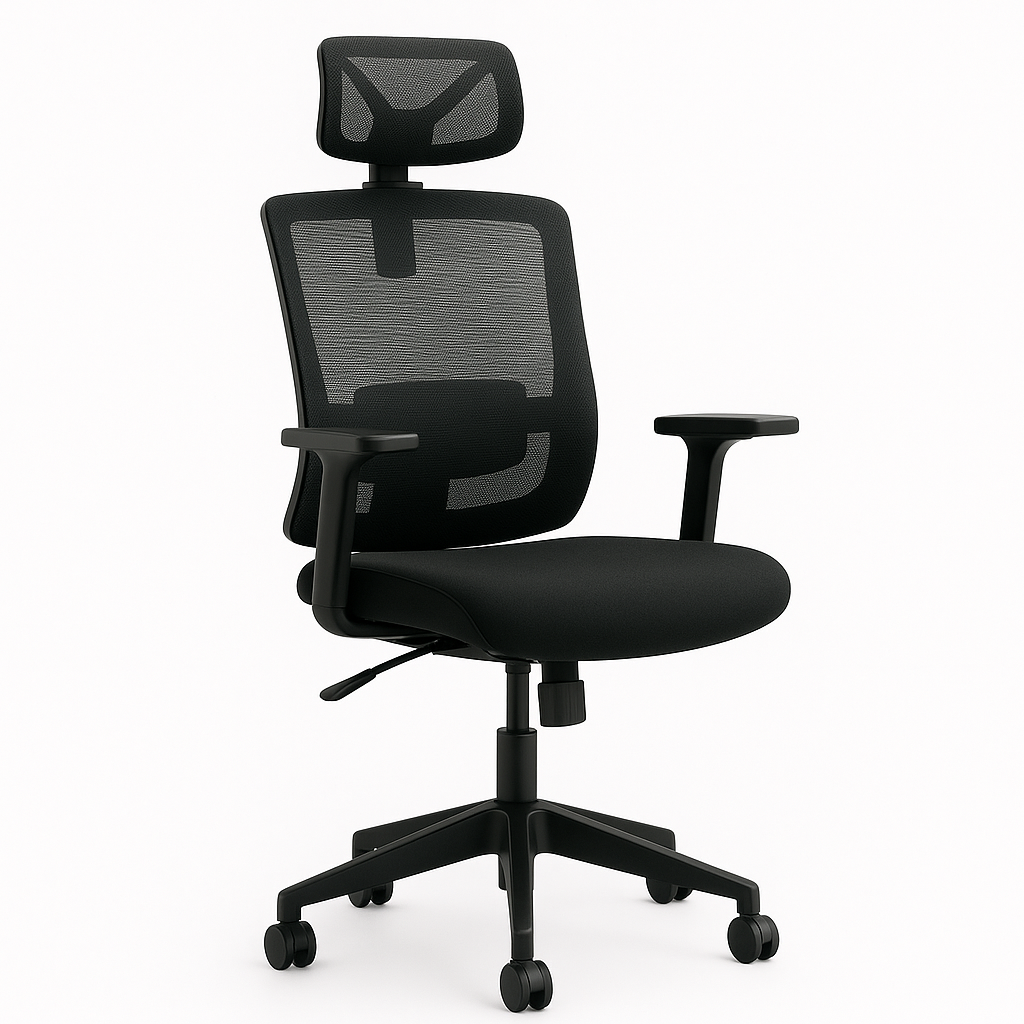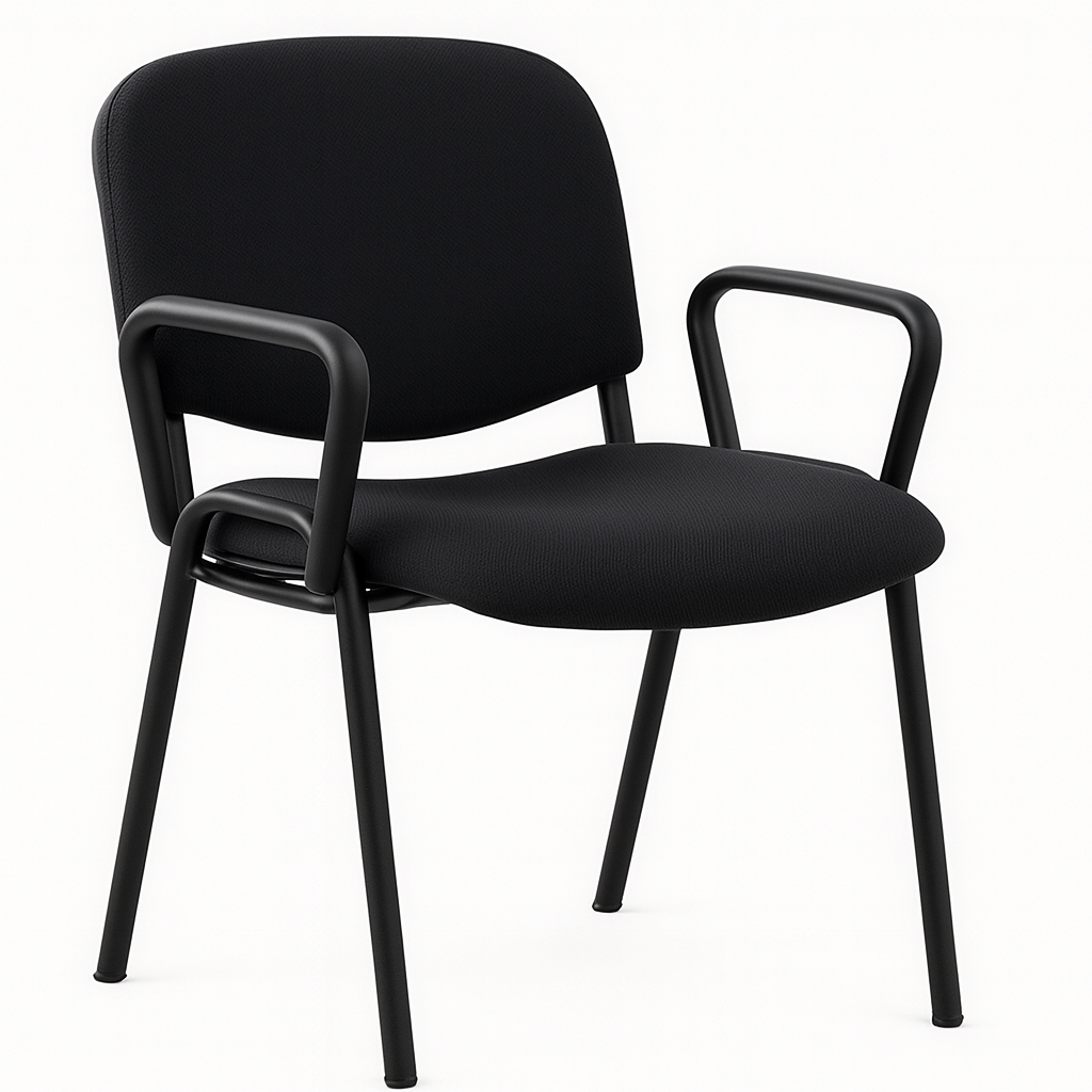 Silla tipo visitante de diseño sobrio y funcional, pensada para salas de reunión y áreas de atención. Tiene respaldo ergonómico en malla con refuerzo en nylon y asiento tapizado con espuma inyectada que brinda confort; el soporte lumbar es fijo, por lo que ofrece apoyo estable sin mecanismos de ajuste. La estructura es metálica con pintura electrostática en gris, lo que mejora la resistencia al uso y la durabilidad.